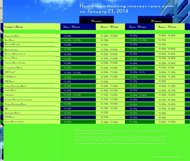 Home Loan Floating interest rates as on January 21, 2014
