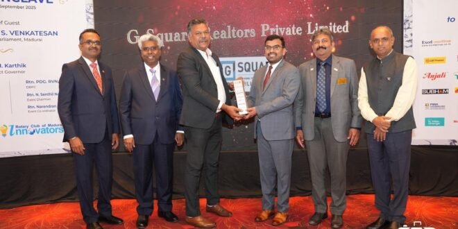 Madurai, September 16, 2025: G Square, India’s largest plotted real estate developer, has been honoured with an Environmental Excellence Award for its outstanding commitment to sustainability and environmental conservation at the CSR Conclave 2025. The event was organised by Rotary District 3000 and the Rotary Club of Madurai Innovators.