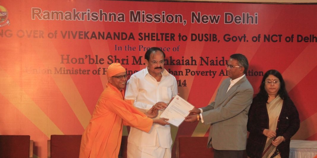 NEW DELHI: Urban Development and Housing Minister M Venkaiah Naidu took part in the handing over ceremony of Vivekanand Shelter constructed by Ramakrishna Mission to Delhi Urban Shelter Improvement Board (DUSIB), on Wednesday.